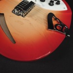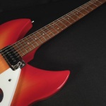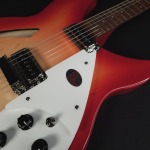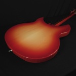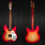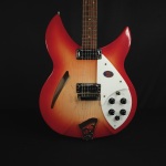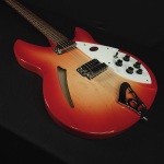 Rickenbacker 330 Fire GloCareful acoustic research has resulted in the full, rich and warm sound of this popular model. Two single coil pickups on a full size body are accented by a traditionally shaped sound hole. The 24 fret Rosewood fingerboard is punctuated by dot inlay fret markers, with full double cutaways permitting access to all the frets. Standard output is monaural through a single jack plate.